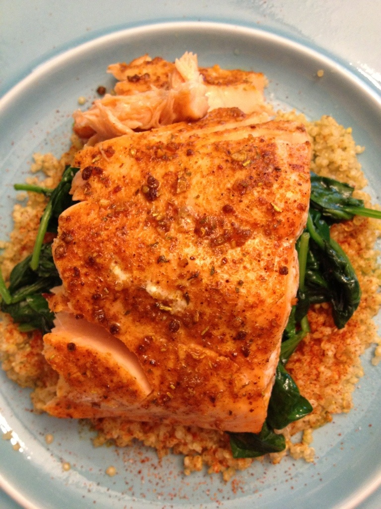 I for some reason always love having spinach with salmon and I had plenty in the fridge so that was my veggie sautéed with a little salt and pepper.
