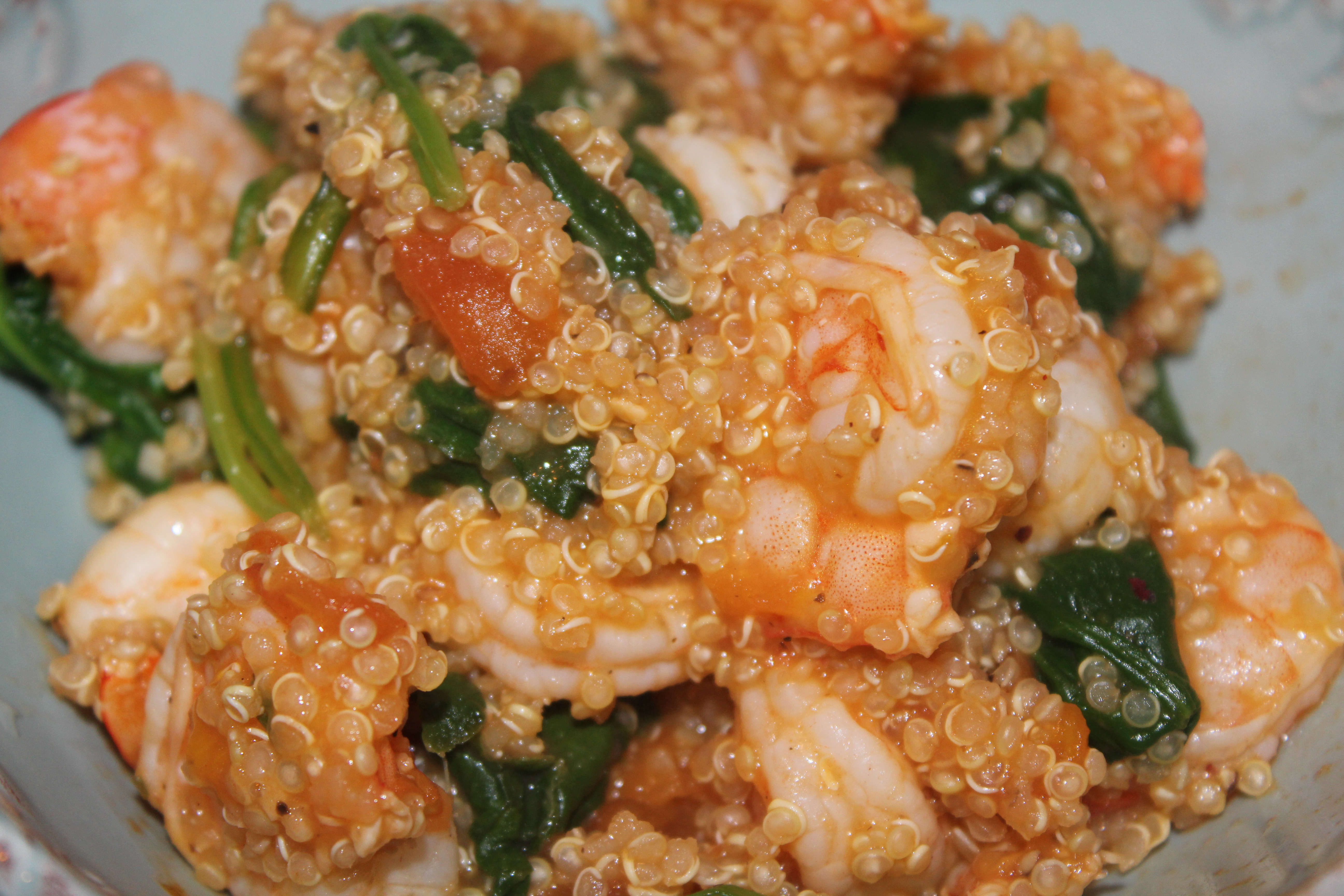 I know shrimp and quinoa again! I just love this combination and it is so easy to throw dinner together with these two as a starting point!  I had a lot of tomatoes left over this week so I needed a way to use them up and of course I waited until the last minute and was starving!