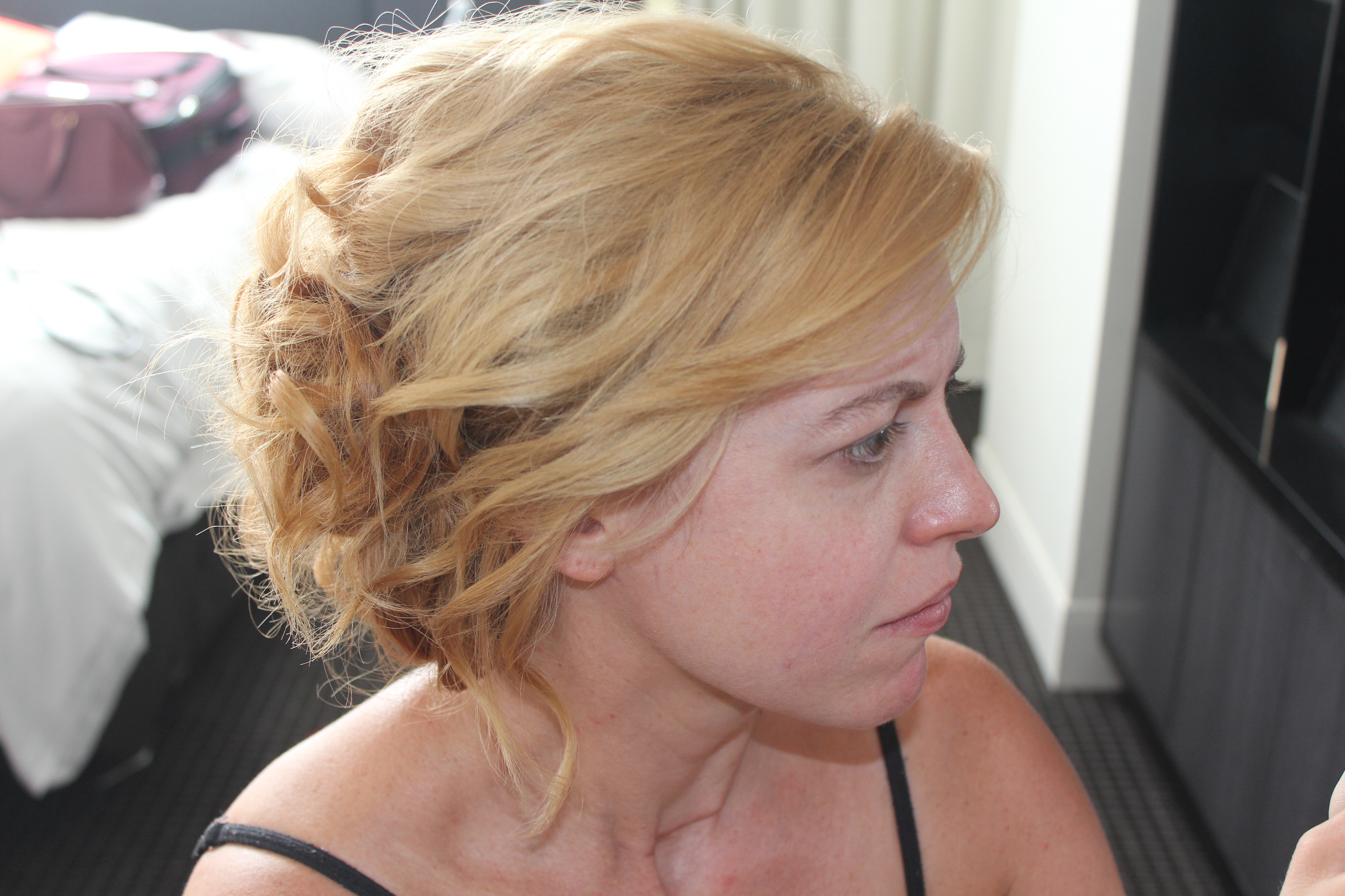 So a couple of months ago my cousin asked me to come back to Pa to help her with a wedding and styling hair for a bridal party. I was so excited when I found out that it fell over a four day weekend for my husband. It worked out perfectly because I love doing hair and we get to spend some time with family and friends as well. The wedding was in downtown Philadelphia which I always love visiting! It still is one of my favorite places. I was scheduled to do most of the up-dos for the bridal party. The day went so smoothly and I loved getting to work with my cousin who is great at hair and makeup! The first girl that I did loved her hair and so the rest of the bridesmaids wanted similar styles to what she had. The only issue was that no one had any idea of what they wanted they just all seemed to say up and to the side. That was fine with me I think that they all turned out great but it would have been fun to see them all look a little different from each other.