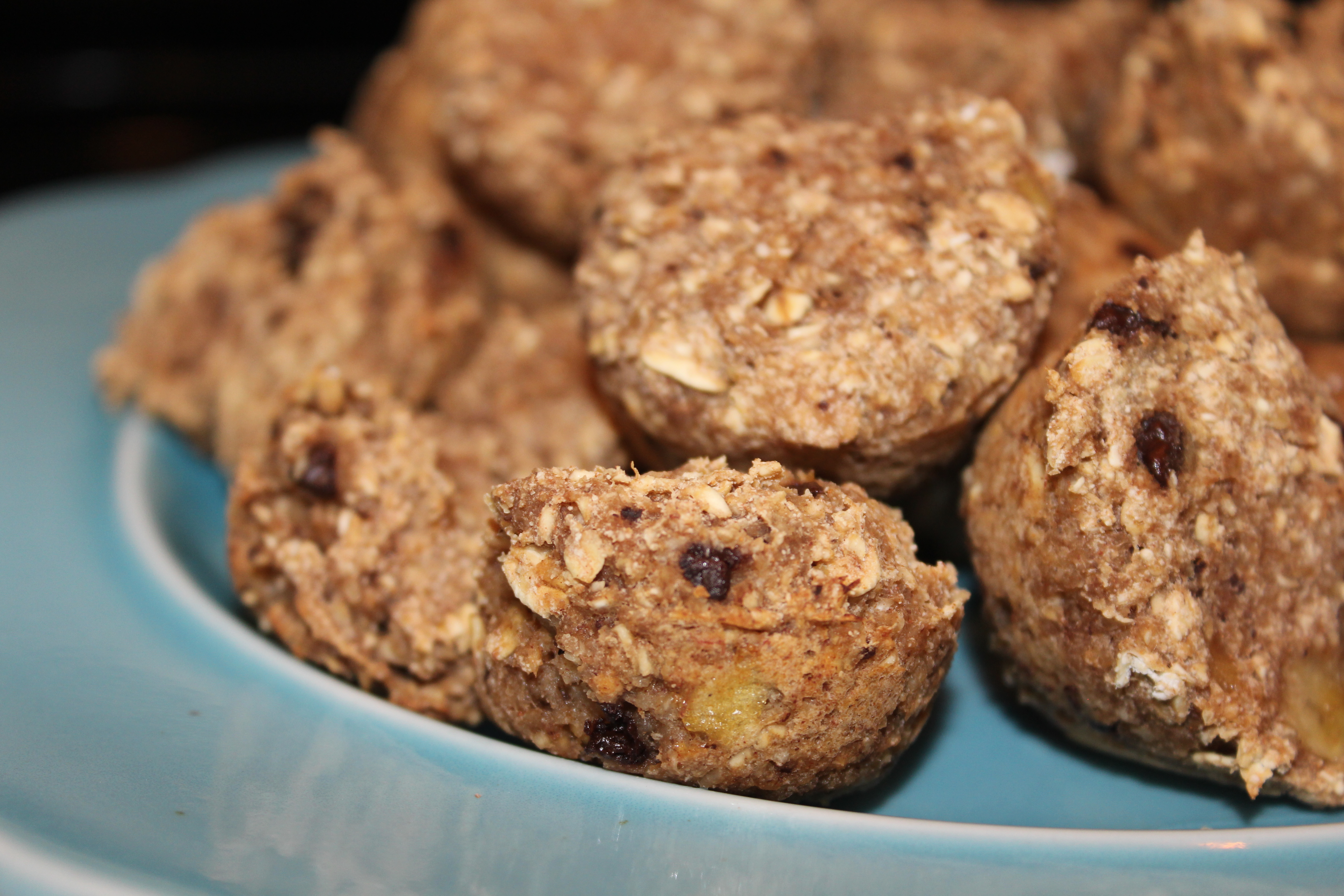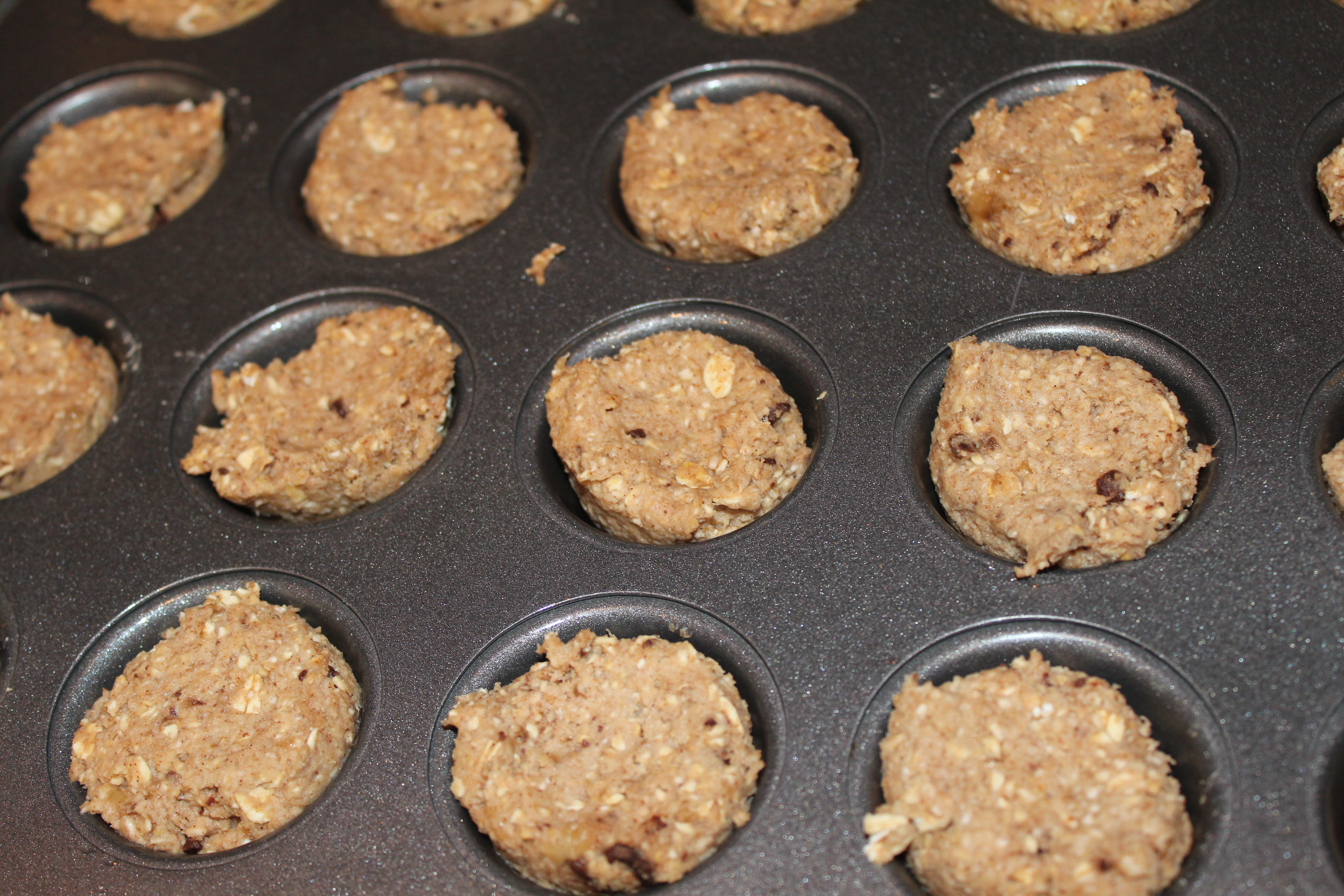 After I had the consistency that I liked I used a smaller cookie scoop and a mini muffin pan and filled it up and put it in the oven for about 15- 20 mins just keep an eye on them so that they don’t overcook and turn into mini hockey pucks! Its also a good idea to use a non-stick spray on your pan I used coconut oil but whatever you have will work!