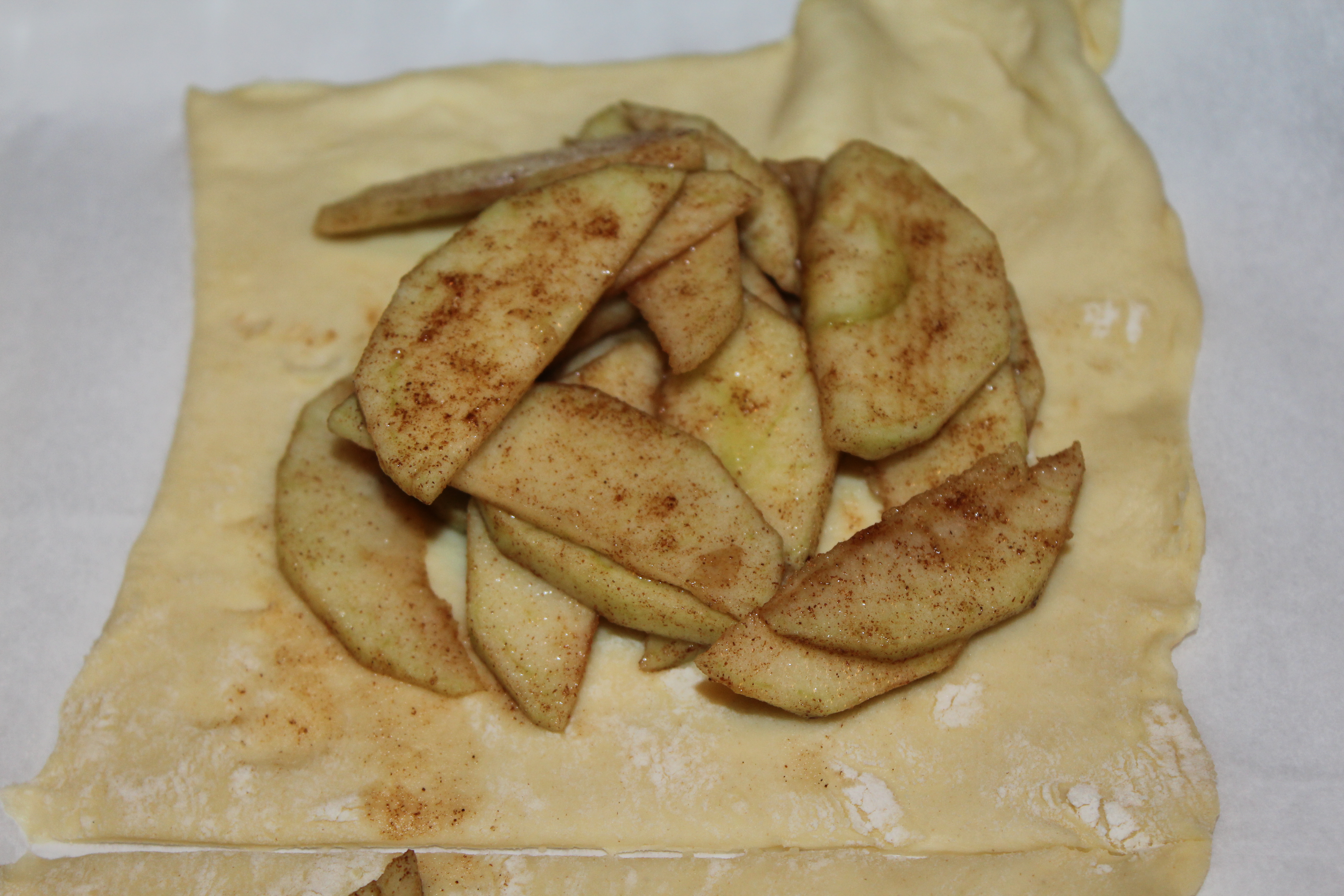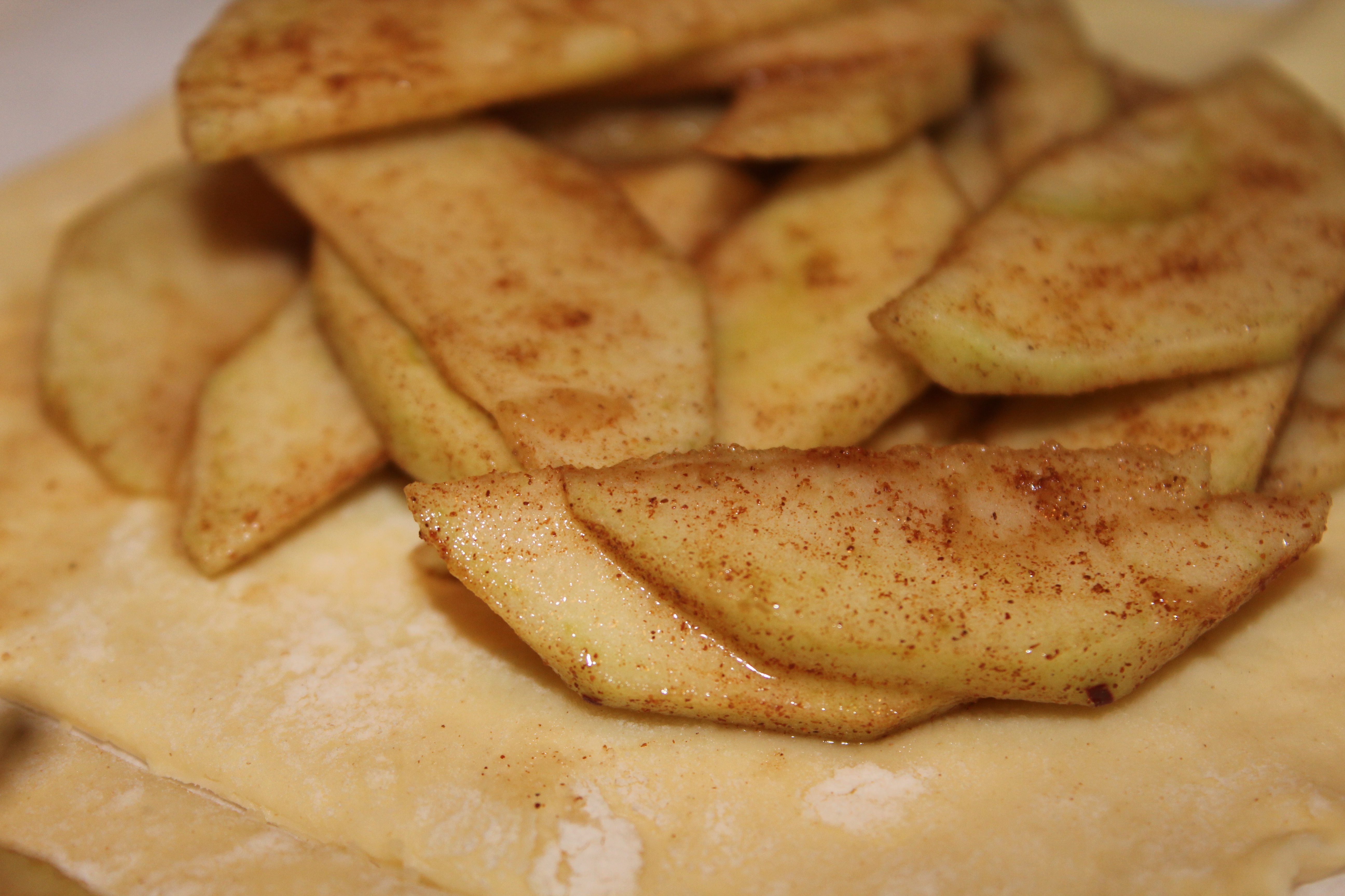 Next you just peel and cut your apples, I used three for one sheet of dough but you can use as many as you like. Place the apples into a bowl and use your fave sugar substitute. I always use Truvia and I really like how it tastes and I think it is great to bake with. Then I just added cinnamon to taste and tossed the apples so that they were evenly coated in the sugar mixture.