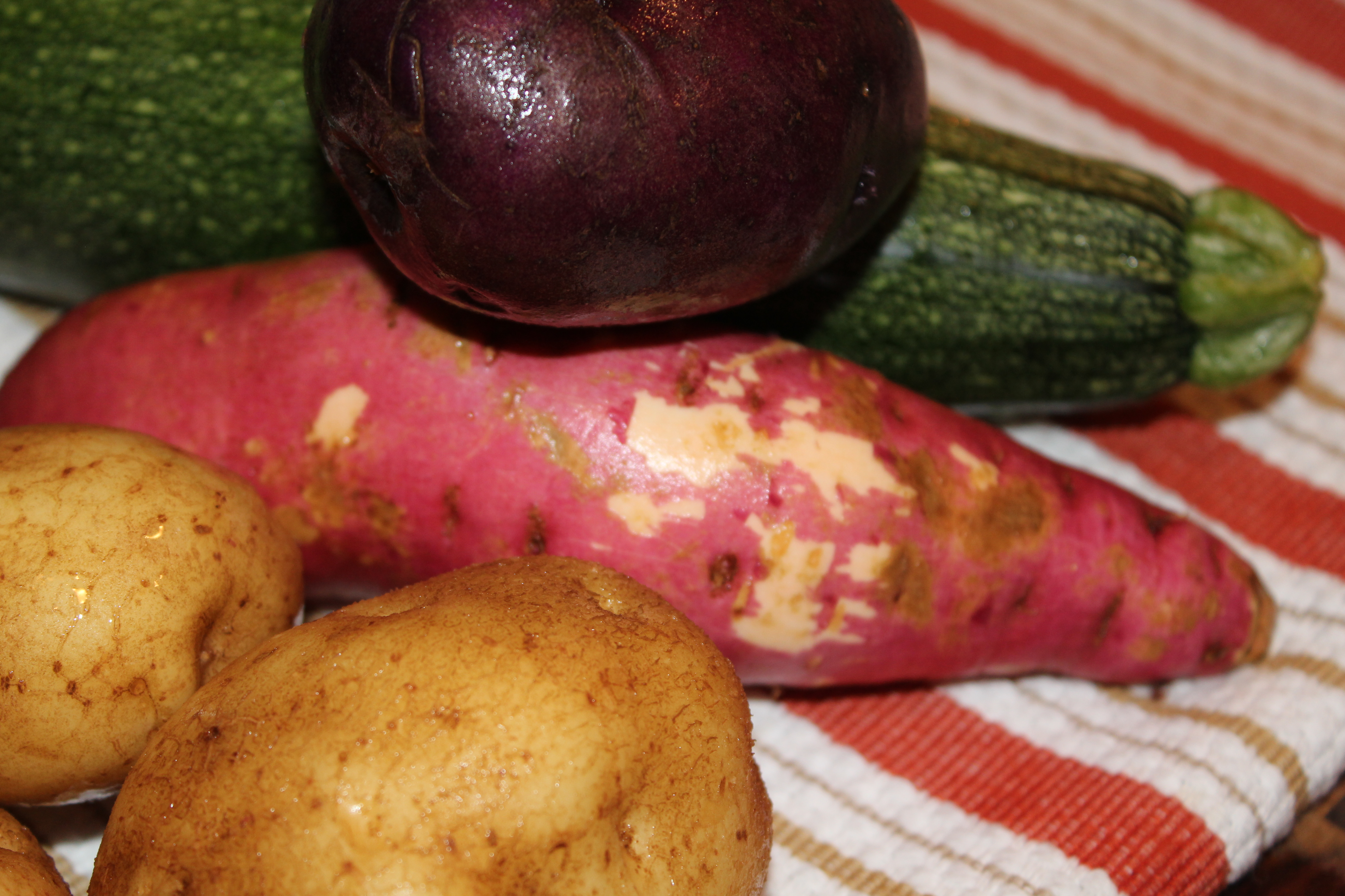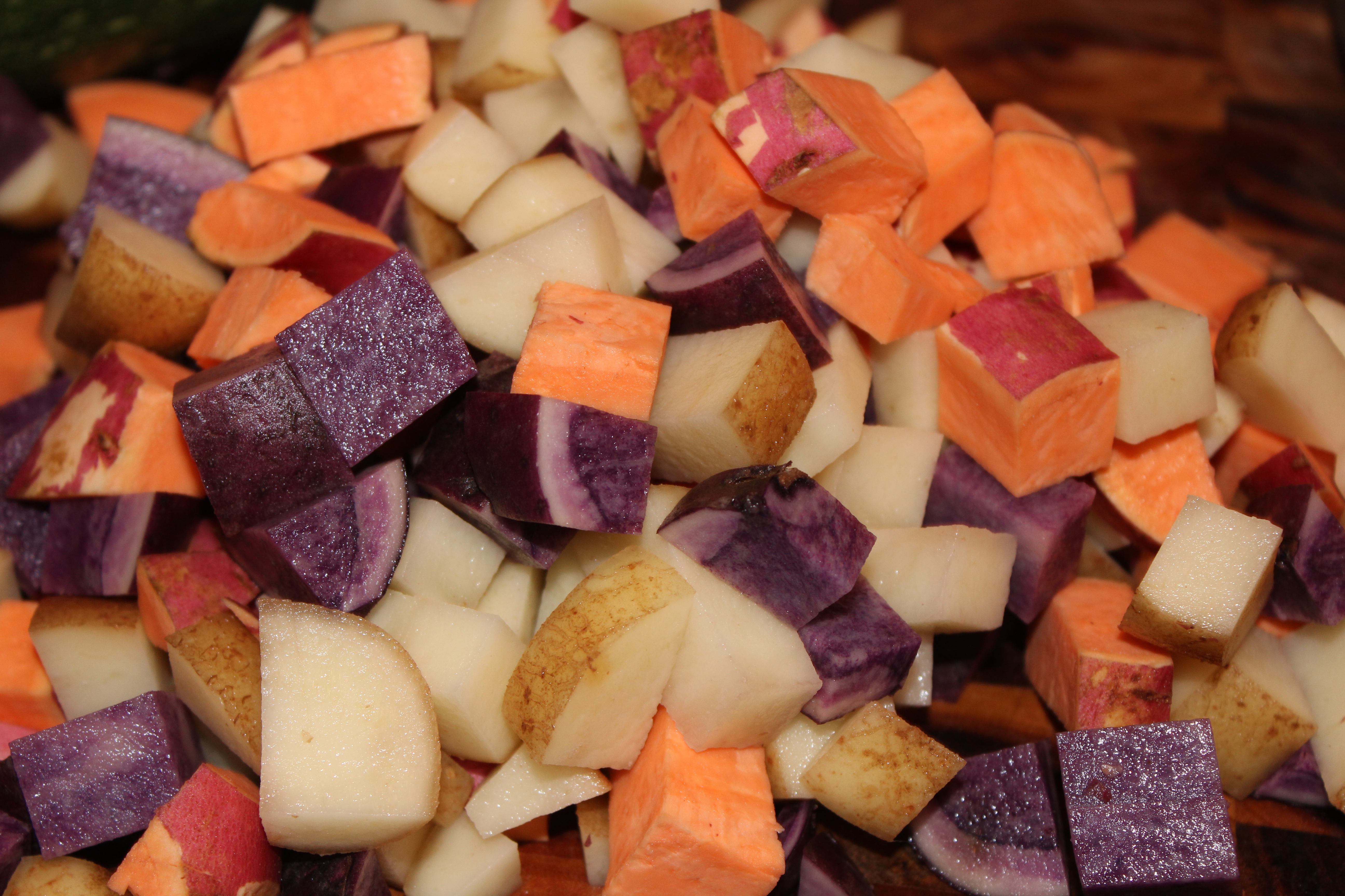 I mentioned in a previous post that we have been subscribing to our local farm to table program and we get tons of fresh veggies every week one very easy way to make them is to just cube everything up and roast it in the oven until they are golden brown or tender. I love doing this because I can throw them in and forget about them for like 30 minutes and finish doing other things or concentrate on the rest of dinner. I usually always cook everything on the stove top but this is so much easier and a super easy clean up if you use foil on your pan you just throw it out with no mess!