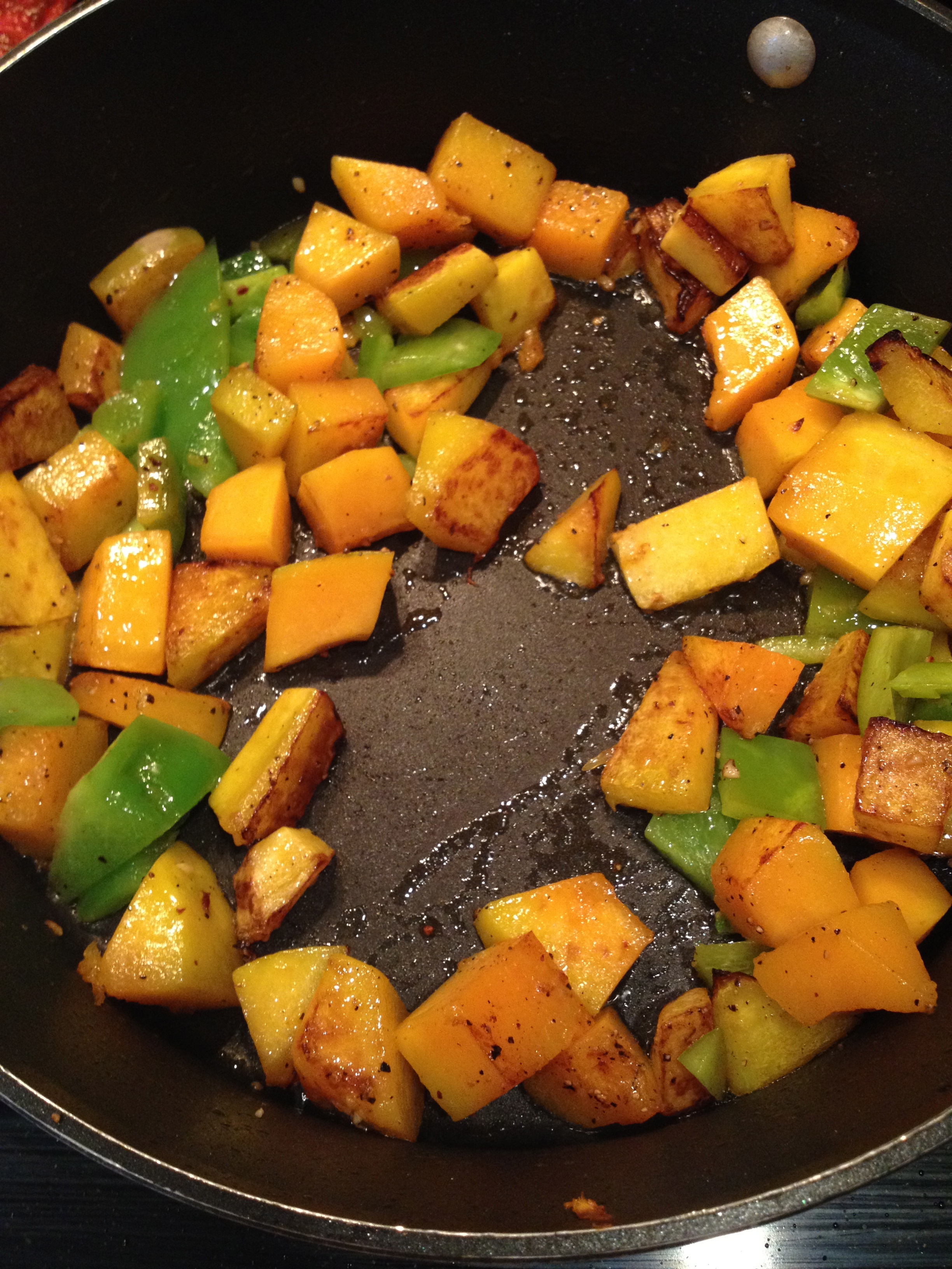 - Sautee the veggies in olive oil until they have a little color and start to soften
