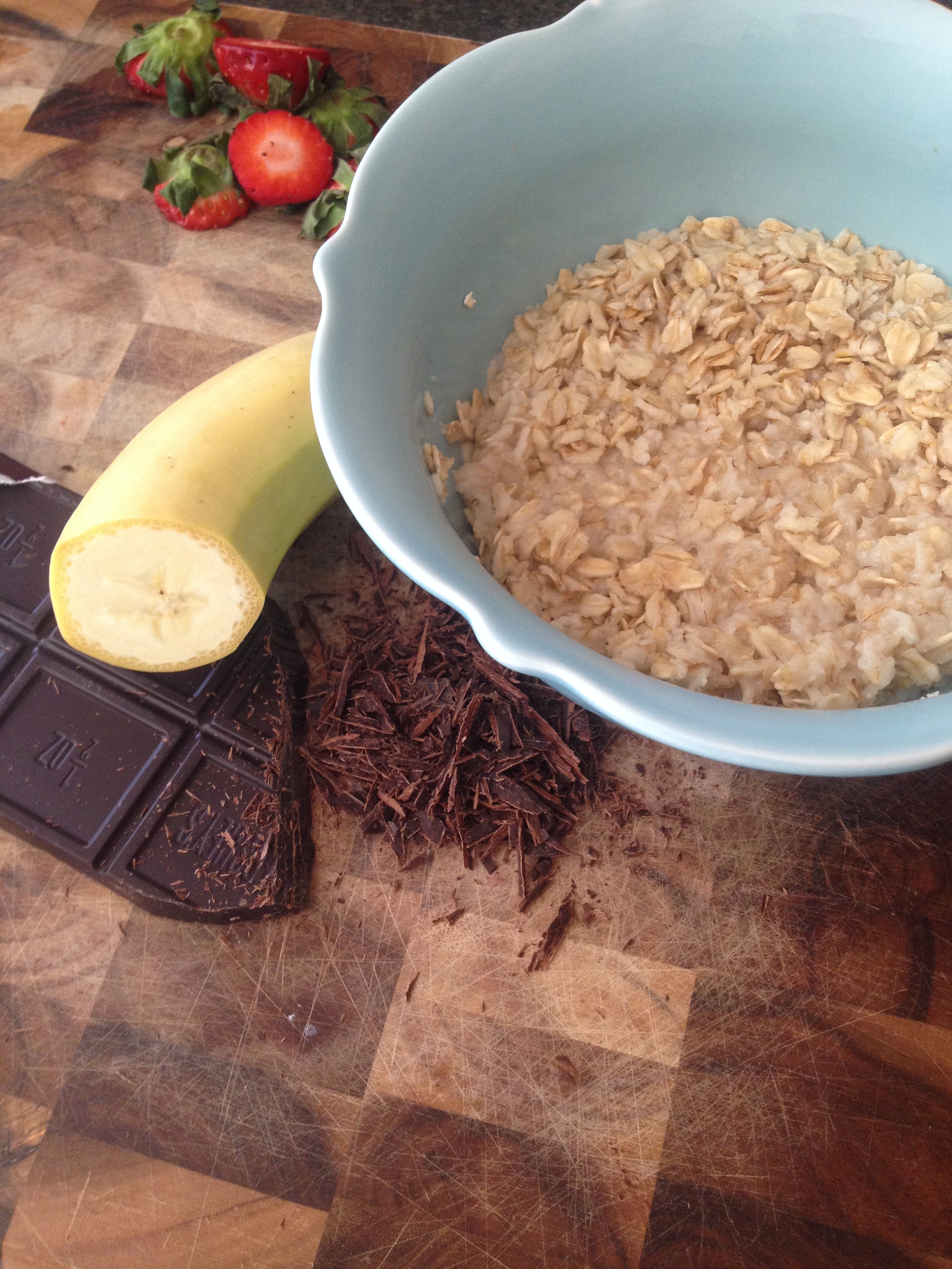 Total Calories: 230 (could vary depending on your oatmeal brand and type of chocolate)