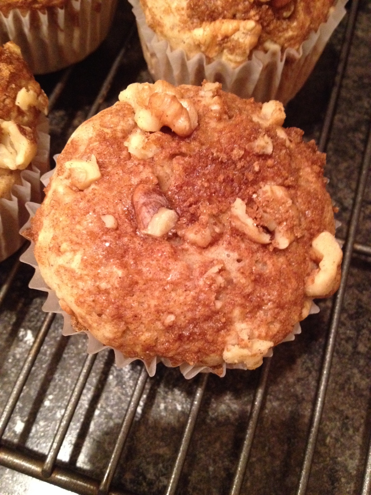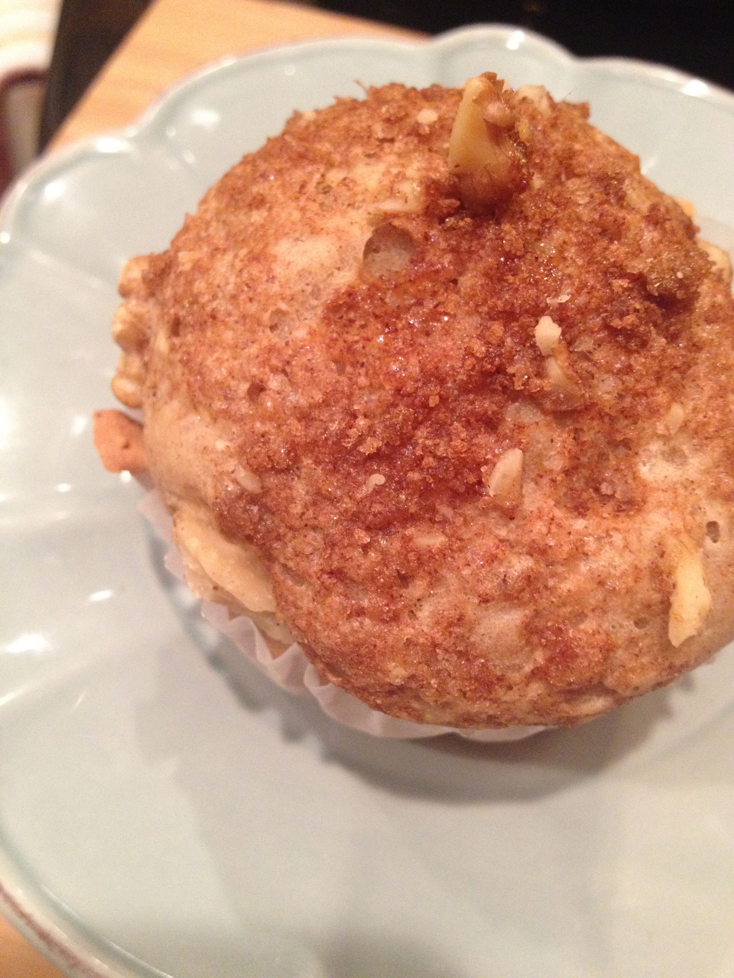 I however did want to make some substitutions to save on the calorie count. Her recipe will make each muffin about 300 calories depending on the brands of ingredients. Mine came out to around 115 each for 15 muffins! Simple things that I always sub are butter or oils with unsweetened applesauce, sugar for Truvia, and I completely omitted the soy yogurt it called for. I have to admit I wasn’t sure how the texture would turn out but surprisingly they were so good, my husband and daughter loved them!