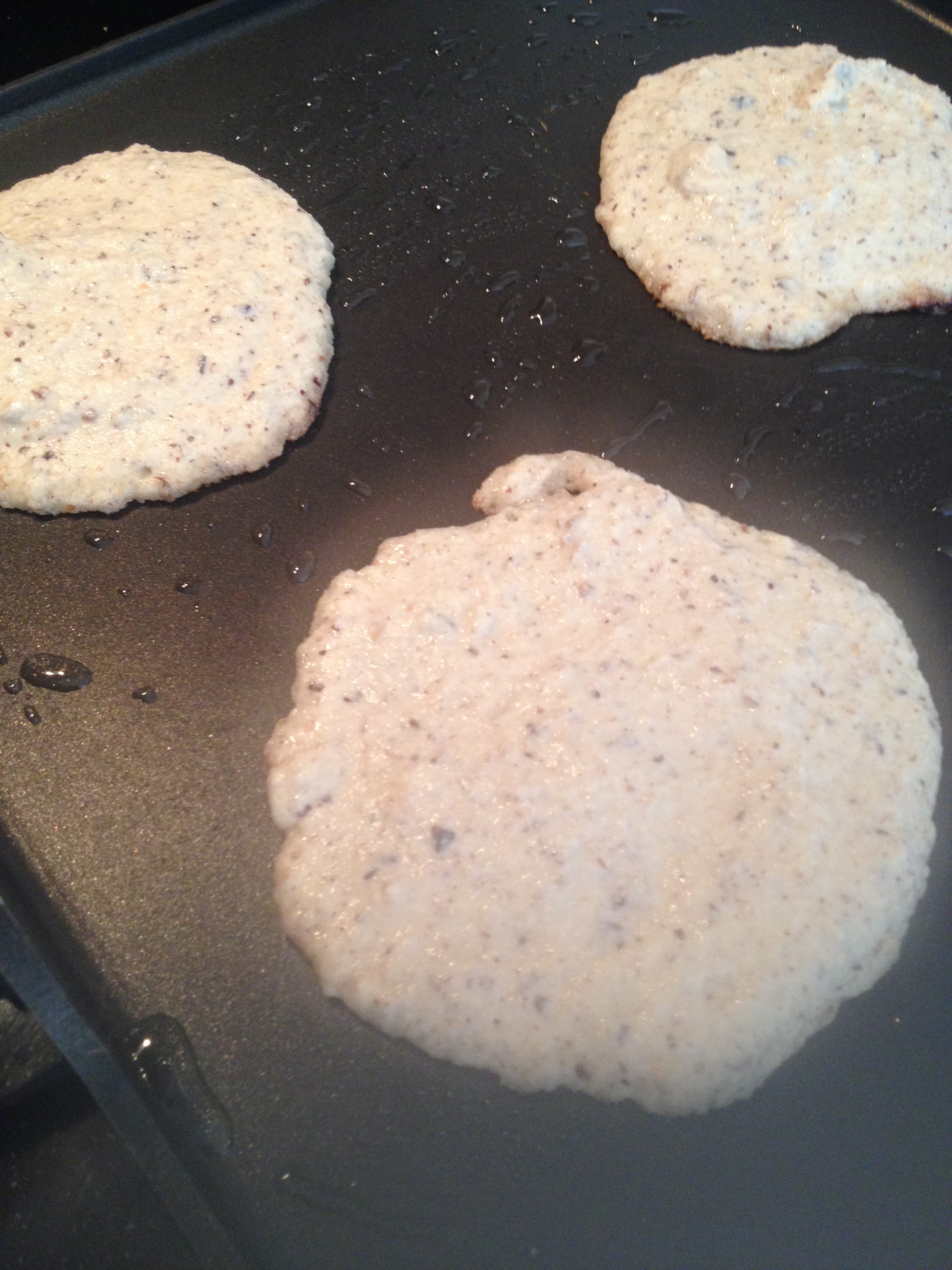 Combine all ingredients in a bowl and then let your pan get super hot, use a little coconut oil and scoop out the pancakes and let them cook. After they are done on both sides I topped them with a little honey for my daughter and she loved them! You could add in mini chocolate chips or blueberries as well. These are definitely more dense than a typical pancake but the flavor is really tasty!