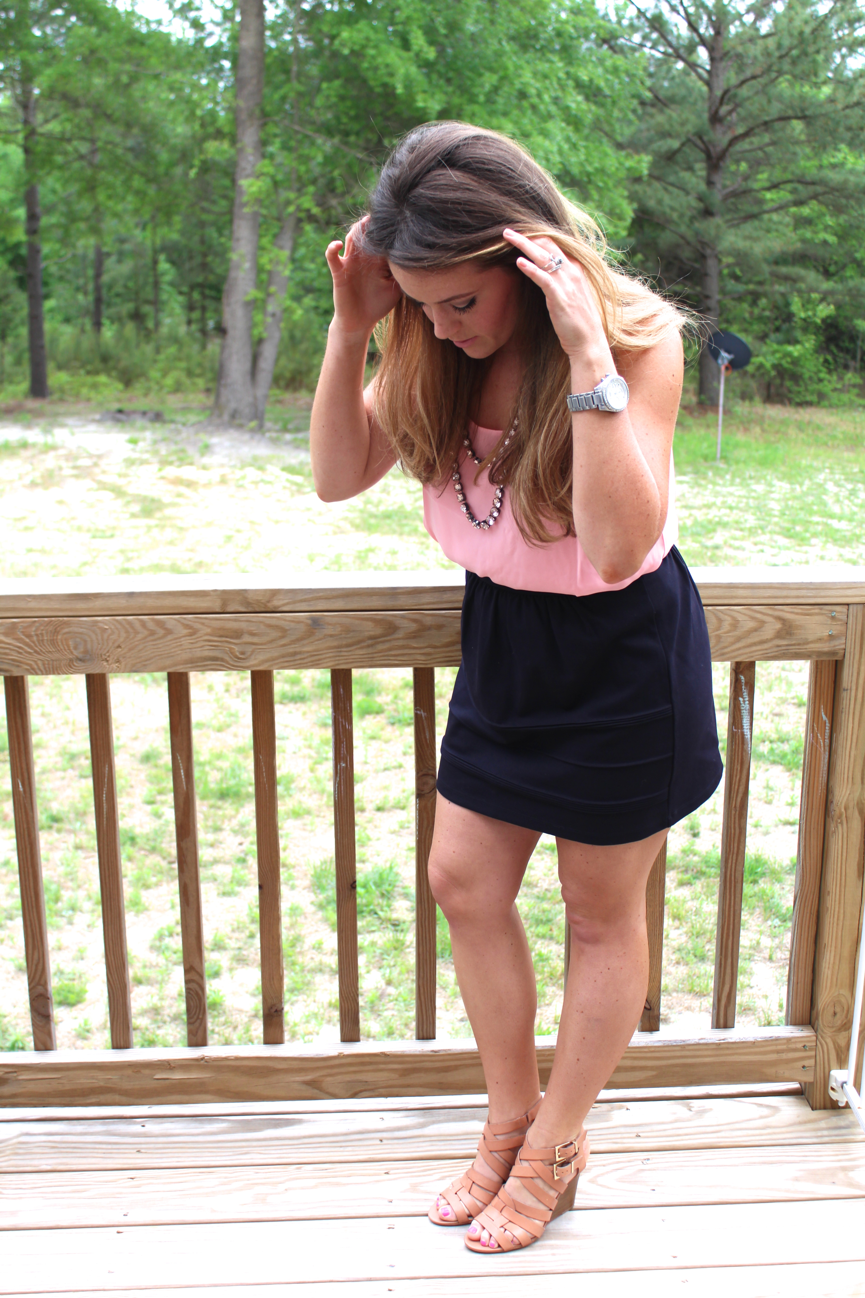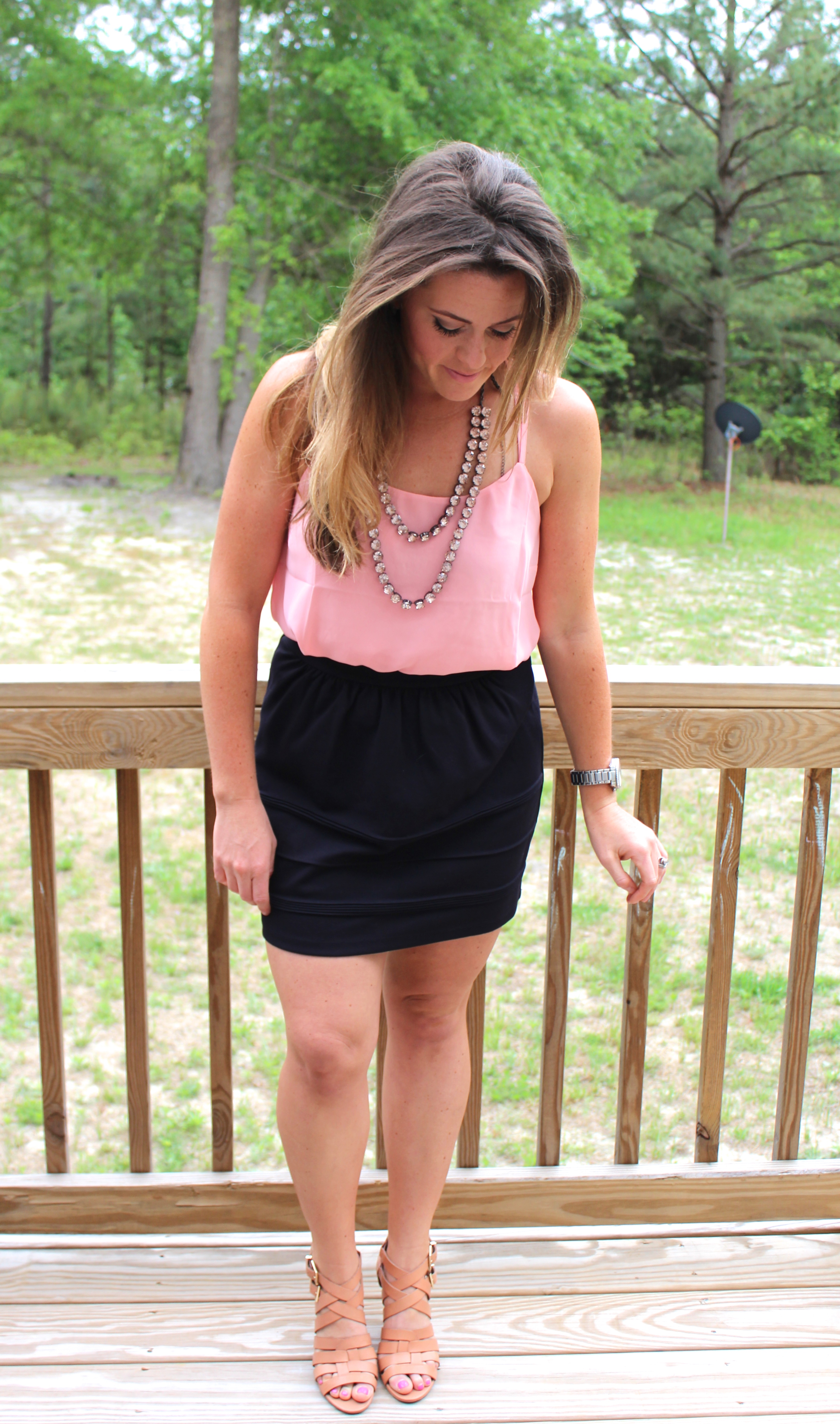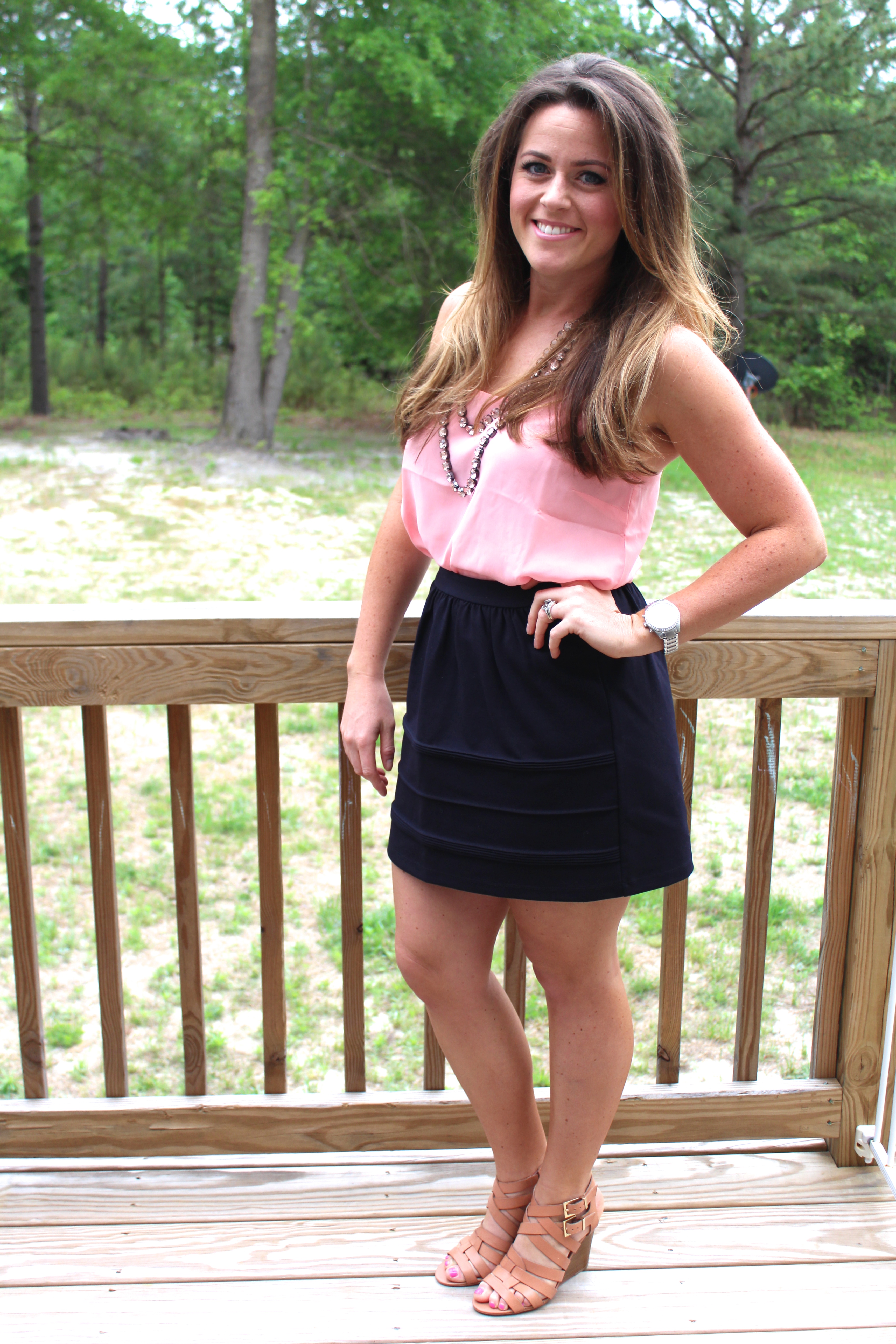 I recently found this skirt from J. Crew and love how easy and comfy it is to wear! I thought I would share a more dressed up way to wear this skirt, but it will be on repeat for me this summer! I love it paired with these tan wedges or even with a simple sandal! The skirt is still on the J. Crew Factory website (along with tons of other adorable summer staples) and comes in other colors too!