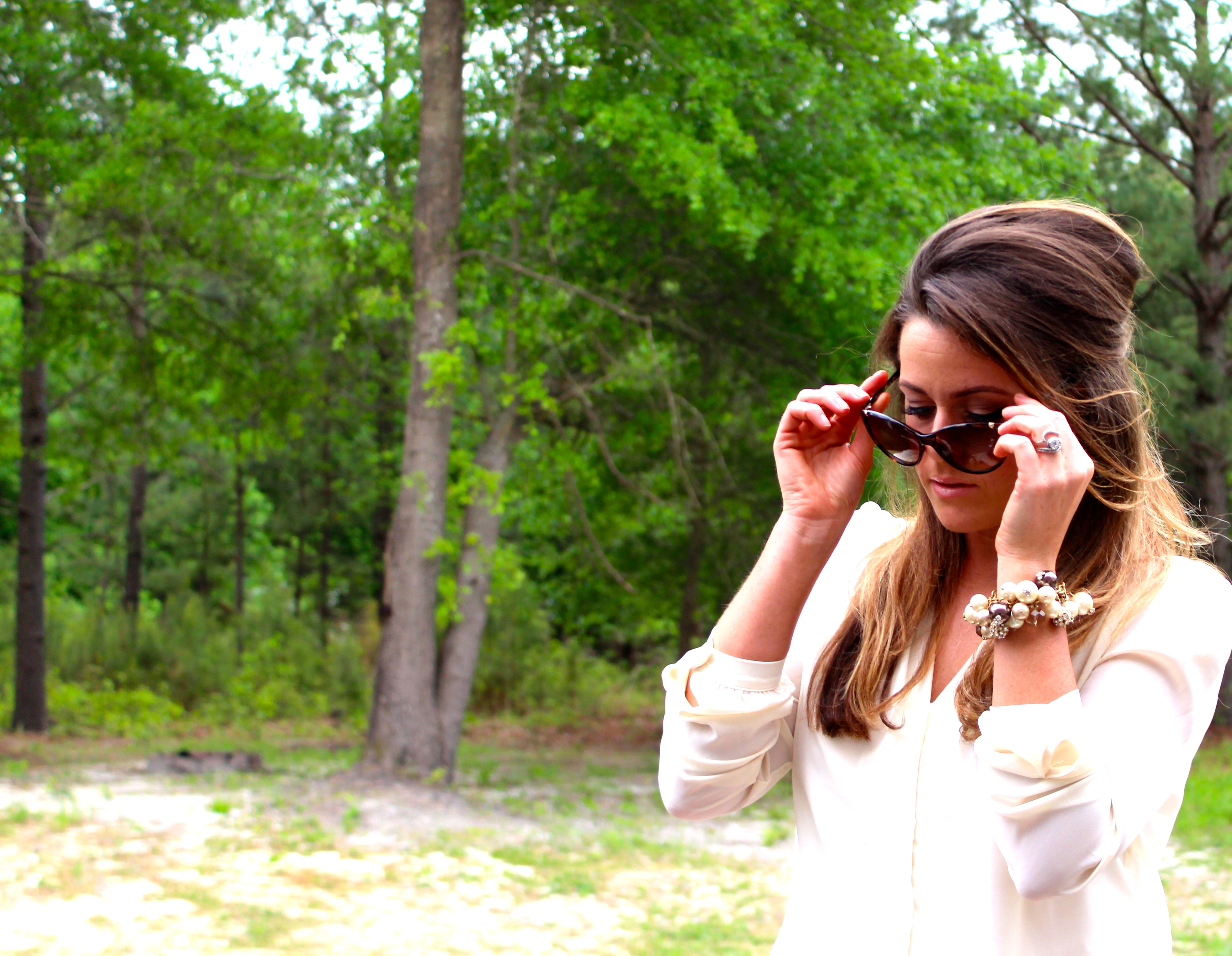 I also picked up this cream shirt at Forever21 and they usually have a bunch of these dressy looking long sleeved tops that pair great with jeans, skirts, and shorts. I decide to dress the shorts and top up here by adding a nude heel that I am obsessed with and the black pair are currently on sale at zara.com for $25.00! I have also worn these shorts with flats and a white short-sleeved shirt for a more causal look and I really like how versatile they are!