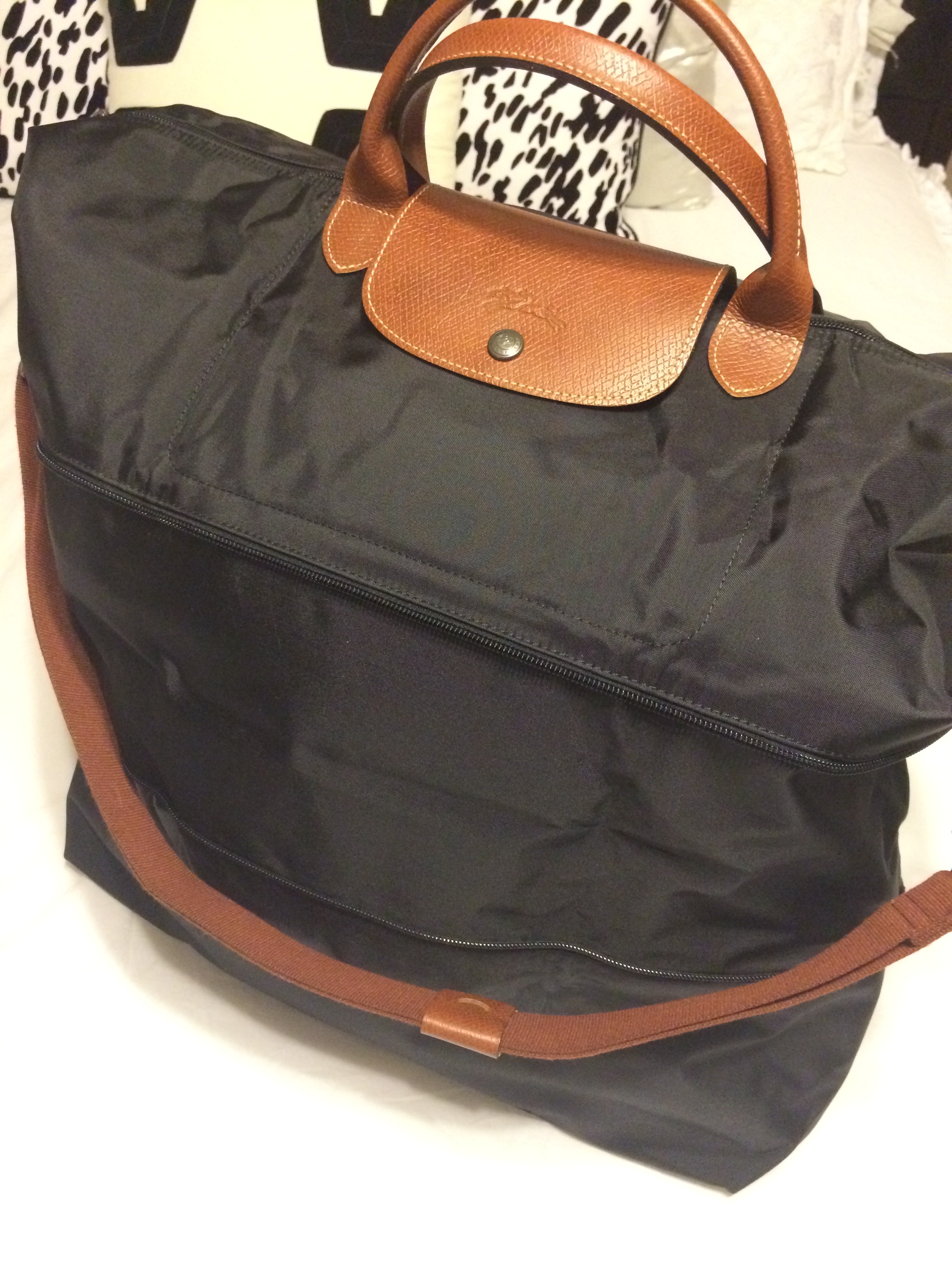 The amazing part of this travel tote is that it folds up super small but then expands to a huge bag that can easily be carried with the shoulder strap. What I would have given for this on the way home instead of 3 backpacks and a 70lb suitcase! Note to self:pack less next time 😉